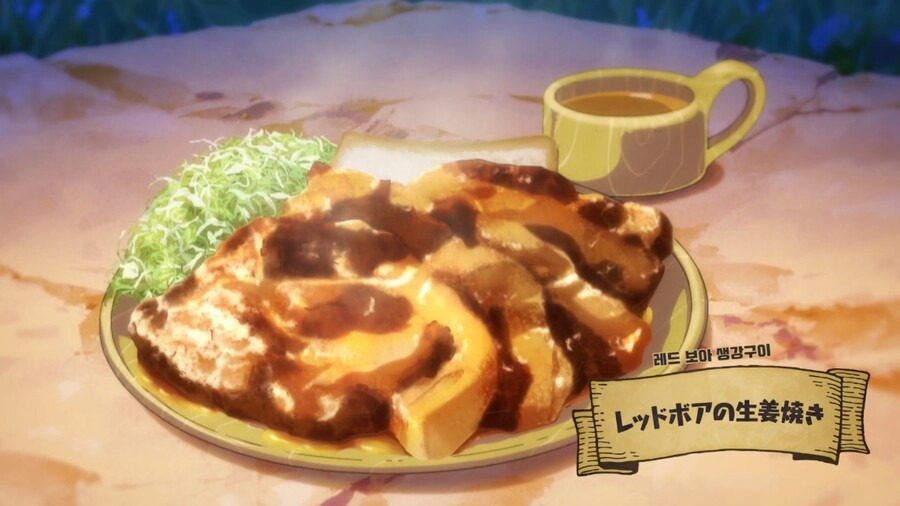 이 작품에서는 전투보다는 음식의 질감과 맛 표현, 그리고 슬로우라이프 특유의 따뜻함에 집중한 작화를 선보였어요.이세계임에도 불구하고 현실보다 더 현실 같은 요리 표현이 이 애니의 핵심 포인트!